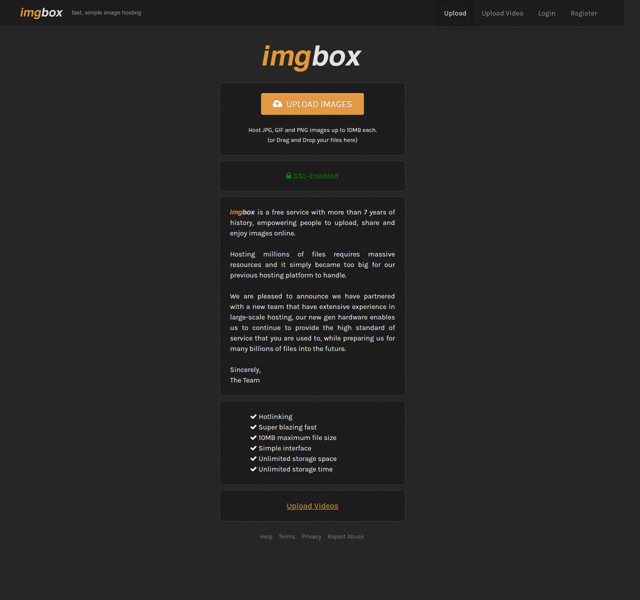 ImgBox offers stronger promises of unlimited storage/time than many free hosts, but it lacks tight guarantees.