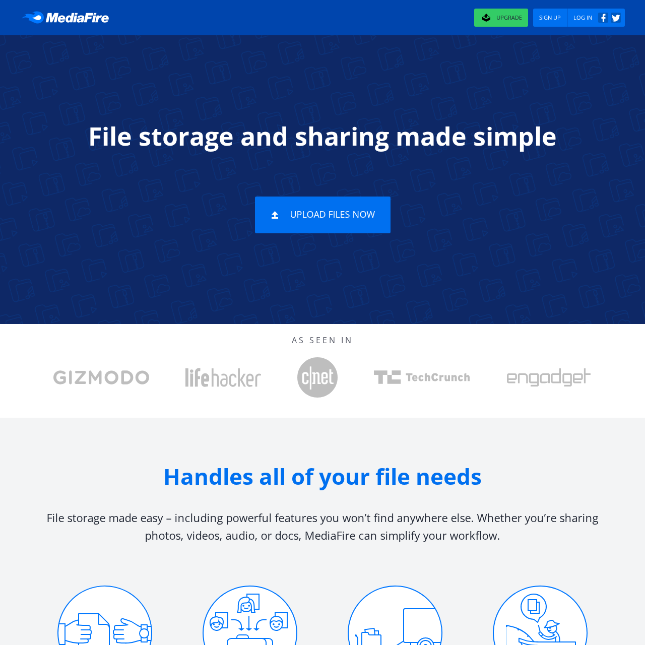 Upload / Download | Web interface allows drag/drop uploads; downloads via links without forced registration in many cases. BestBackupReviews.com+3Wikipedia+3IT Pro+3 |