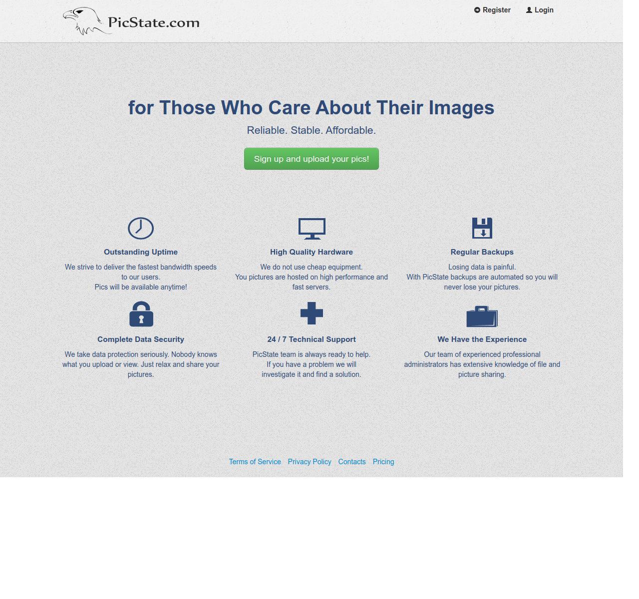 Premium Plans: more storage, unlimited images, longer or indefinite retention, higher resolution support, full-size embed/BB/HTML codes, etc. upgrade.picstate.com